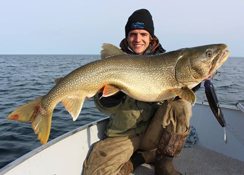 The big laker was 44" and 34 lbs and was caught on a Bondy Mini Wobbler. It had a pike in its belly going all the way from its mouth to its butt. Look at the two pics. It was this NWT guide's PB.