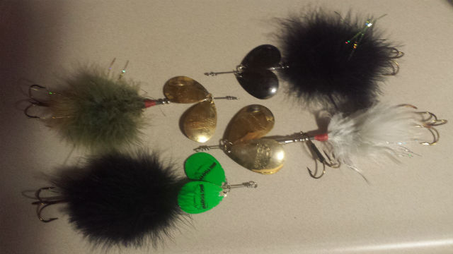 4 Bigtooth Tackle Juice bucktails. These lures have definitely been used, but are in fine fishing condition. The white (Halo) bucktail is a double 9 and the other 3 are double 8s (Juice Mini's). $35 shipped for all four.
