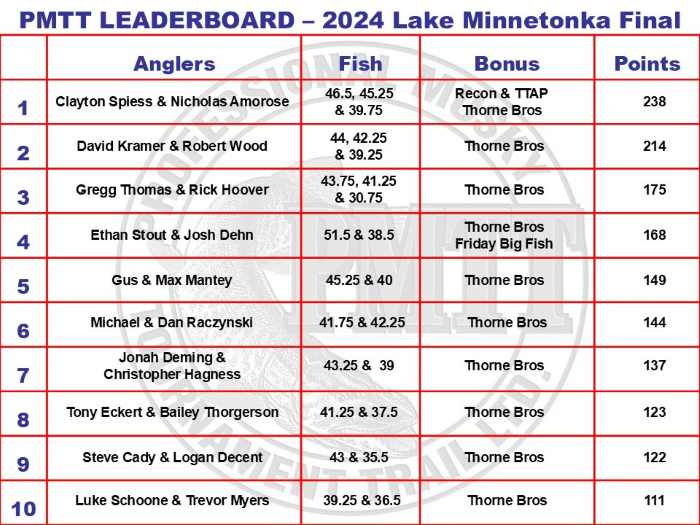 Muskie Fishing -> General Discussion -> Final 2024 PMTT Thorne Bros Late Summer Showdown