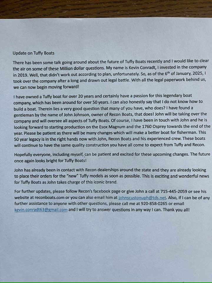 Please share to spread the word to past, present and potential future Tuffy Boats owners.