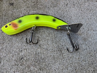 Location: Brighton CO. | Lots of mom and pop stuff out there but with that tail piece maybe it's made to be jerked like a Suick so if you retrieve it all you get is spin. So it may not work too well and thus it doesn't sell and we don't know the names of lures that don't work or sell. |