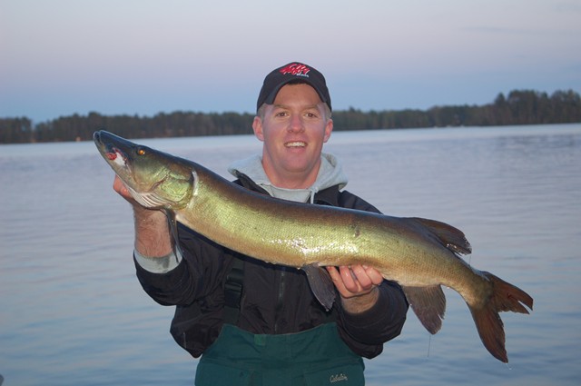 Location: Tomahawk, Wisconsin | 5-27-2008 Opening nite for musky league, 30 anglers, 15 boats, air temp 60 degrees, Moens Chain, water temps upper 50's to low 60's, some boats saw fish some did not, 2 fish caught, I had a guest in my boat last nite and he caught a 40.5 on a Crane Bait, Merckid managed to catch the only registered fish last nite at 39.5, Congrats T.J.!! For those who believe that cold water is not top water time you may want to rethink your ideas, T.J.'s fish ate a topraider. Not the greatest nite but it was awesome to get out and fish with the great crowd that makes up this league!! Onward to Boom Lake next week!! |