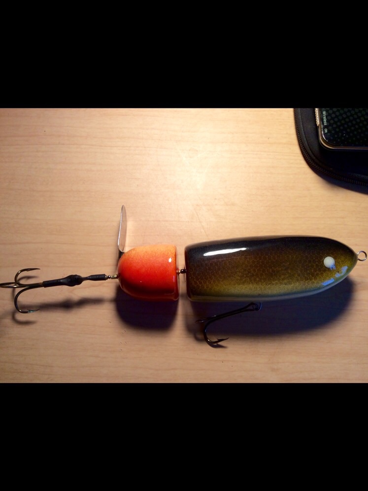 | Jump to page : 1 Now viewing page 1 [30 messages per page] More Muskie Fishing -> Basement Baits and Custom Lure Painting -> Big game topwater prop / my first try at a foil |