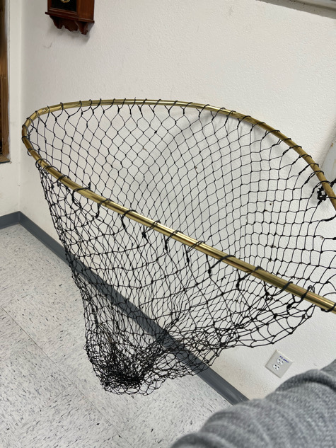 30” x 40” hoop. About 7’ fully extended. Plastic coated net in good shape
