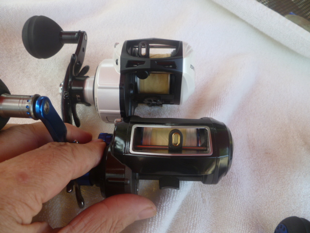Posts: 78 | Propster - 8/27/2015 7:59 AM John, it almost looks from your pics that they made the cap for the line guide pawl a bit more accessible. Or is that an optical illusion? The line guide pawl being a typically common high wear part you would think reel companies would make it much more accessible to change them out than they do, without having to take the whole reel apart just to do so. Absolutely right. There is no guard in place that has to be removed first. It is right there for easy service. The last image is a good look at the different geometry of the Toro Beast/S versus the older Toro NaCl 60. It still palms easily but has a much more narrow and tall layout although the wide angle lense makes the NaCl seem a little wider yet than it is. Attachments ---------------- P1030416.JPG (179KB - 823 downloads) P1030417.JPG (163KB - 650 downloads) P1030418.JPG (169KB - 664 downloads) | ||