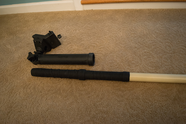 Posts: 251 | I will try to post a picture soon but what I did is start with a wooster 4-8' pole from home depot. I choose this one since it was pretty solid even when almost fully extended so no worries about adding to shakiness of the camera. Seen here: http://www.homedepot.com/p/Wooster-4-ft-8-ft-Sherlock-Extension-Pol... I then removed the rubber handle at the butt end. The handle then fits into a scotty rocket launcher rod holder. seen here: http://www.amazon.com/gp/product/B004O0J5LM/ref=pd_lpo_sbs_dp_ss_1?... The good thing about this is that I can move it all around the boat on the rail system of a lund. It was a bit loose so I had to wrap the end of the handle in some cloth hockey tape. now it doesn't shake/move in the rod holder. To attach the GoPro I had to remove a screw at the top and remove the paint roller. I was left with a hexagonal metal pipe. I was able to cut down a piece of wood from a 2x4 to hammer down into the pipe and put the screw through to make sure it wasn't going anywhere. Then using a 1/4"-20 hanger bolt like this one: http://www.homedepot.com/p/Crown-Bolt-1-4-in-20-x-1-1-2-in-Plain-Do... I put that into the wood piece. Next I cut the point off the end sticking up so I can attach this to the top: http://www.amazon.com/Grifiti-Cameras-Holders-Brackets-Photography/... Then that attaches to this: http://www.amazon.com/GoPro-GTRA30-Tripod-Mount/dp/B002RCLYXG/ref=s... The GoPro then attaches to the mount. Sound like a lot of work but it was actually done in just a few hours of work, a bit more time to plan. I did it this way so I have flexibility as to where I have it on the boat, the height, the exact camera angle, ect. Also, I have it so that I can easily take the pole out of the rod holder then use it to get underwater release shots. I will try to get pics, sounds more complicated then it is. | ||