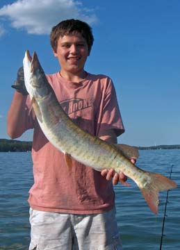 Posts: 2691 Location: Pewaukee, Wisconsin | The trolling bite is now starting to get going. Clients have had to sort through a bumper crop of sub-legals to get a few legals. A couple good ones have been caught lately including a very nice upper 40 casting. Both casting and trolling have been productive. Trolling has out produced casting just because more water is covered with more baits. I will post a few recent client pictures and add a better report as soon as I get some free time. Bucktails and crank baits have out produced any other baits lately. The fish are very active and ready to battle. Edited by Mikes Extreme 7/3/2007 5:36 AM Attachments ---------------- 35mikey3x5.jpg (52KB - 208 downloads) muskyboy5x3.jpg (67KB - 208 downloads) 37dan5x3.jpg (76KB - 211 downloads) 36anderson2x1.jpg (46KB - 207 downloads) 34katie2x1.jpg (41KB - 202 downloads) 34dale1x2.jpg (36KB - 191 downloads) | ||