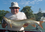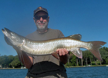 Posts: 2691 Location: Pewaukee, Wisconsin | After a few frendly e-mails and pm's--OK, OK, guys, here the latest news on Pewaukee Lake. Water temperatures are in the mid 70's and going up with this recent week of heat. The muskie action has been good in the early morning and late afternoons. Multiple patterns have produced fish in the past two weeks. Bucktails have got most of the fish burned over the weeds. Top water baits like a Headbanger, Top Raiders, Creeper and Hawg Wobbler have all caught fish recently. Bucktails of all kinds have produced action. I also had a few reports of fish caught on crankbaits casted and trolled from past clients and friends. I got out for a couple hours late Saturday afternoon and caught a low thirtys and a 38-incher trolling cranks through the schools of gills that I found in open water. Most of the action has been from smaller fish with some low 40's and one mid 40's fish CPR'ed last week. Now don't get me wrong, Pewaukee lake can shut a good stick down on some days and make a hero out of a first timer on others. The fishing is far from outstanding the past two weeks if your looking for good muskies. Now if your targeting sub legals the action is hot for 25 to 28 inchers in the larger weed beds on the eastern half of the lake. You will get your chances for a good fish if you put your time in and keep a positive attitude. Working the deeper weed edges will increase your chances for a quality fish. The weeds are now almost back to normal and lots of fish in and around the weeds. This week I have noticed lots of panfish starting to move out and spread all over the deeper water. Most of these fish are hanging in the top 10ft of the water column. This is the time of year you can troll or cast for muskies. I had two clients out last night that started out casting and then wanted to take a break so I set up some lines and shortline trolled for about a half hour. I mentioned the walleyes that were stacking up in the area we were trolling and they were interested in them. I set up two rods to get down to that depth and quickly caught a 20-incher. They liked that and we kept trolling but it's hard to not cast when the ski's are still in the casting spots. Trolling will come soon enough. This is the time of the season where the muskies and baitfish will start to move to deeper water. I will be targeting the areas where larger weedbeds reach into deeper water, main lake points, islands, and river channels. It will not be long for the trolling bite to get started. For now I will enjoy the casting bite as long as it still shows me some of the 40-inch class fish. Once the larger fish start to move out I will split my time between casting and trolling. Crank baits, bucktails, jerk baits and even plastics will produce for a while yet. With the water temperatures going up so is the muskies metabolism. They are eating more and can be more active. Get out early if you can, that is been the best action in the past few weeks. Don't get frustrated if you don't move a fish, keep up a positive attitude and they will show up. The last 7 fish caught out of my boat were caught without even a follow. I can handle catching evey fish we come in contact with, follows are good but feeling a fish first is best. Sorry for the lack of reports here and on my web site. Lots of things going on with a family, regular job and guide jobs after work. Life is going by way to fast. Thank god for fishing, wait, thats even work. LOL Good luck to all, See Ya on the water!!! | ||