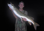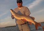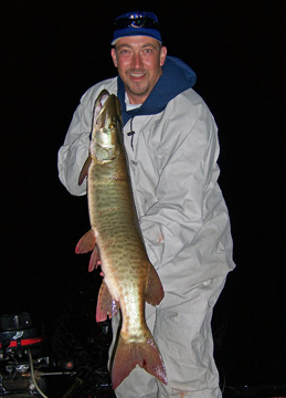 Posts: 2691 Location: Pewaukee, Wisconsin | Well for those who are waiting for the casting bite to get going down here in South Eastern Wisconsin it's time to get back in action. Th recent cool down that set in last weekend, the shorter days and cool night has jump started the casting bite around here. Mid to upper 60's can be found on most area lakes now. The warm southeast winds the last few days have warmed up the water some and also the action. Multiple fish afternoons have been comon. Trolling is still very good as the suspendo's are showing up on the breaks and flats. The weed lines are now alive with action from the new fish that are roaming the weeds. The best part of this time of year is the fish you get to follow will be very active and go around the 8 a bunch of times. The first 20ft of your cast and the last 20 have been where the fish hit. Top water, bucktails and cranks have produced. Look for the action to heat up as the water cools down and more fish move up into the weeds. This is the time of year you have to choose what to do. Cast or troll. Both are working and some times one is better than the other. Last night my client had 4 hits in the first hour of trolling. He boated two, lost one at the boat and missed on. We trolled for another hour and then switched to casting as the sun was going down. A hour of casting with no action had me wondering if we should have kept trolling. Moon set was only a half hour away so I headed to the two spots that produced the night before for yesterdays client. Ben was pumped to score and his determination was solid. The water exploded at boat side as a three footer crushed his Lungen DC9(proto type)(available soon). After a great fight I slipped the net under Bens third muskie. A quick picture and we were back to casting the moon set. Minutes later I had a mid thirtys fish eat my Lungen Reefer Night Biteas I started to crank it. I offered the fish to Ben and he refused. He wanted to see how I fought the fish and set up the net job. Long story short, they are starting to get active and are now in the shallows. I will add a few pics for the last week or so. For a more detailed report see my website "mikekoepp.com". Attachments ---------------- 40russ5x3.jpg (69KB - 175 downloads) 40humcke5x3.jpg (67KB - 179 downloads) 39humcke5x3.jpg (75KB - 193 downloads) 41dean3x5.jpg (62KB - 173 downloads) 43scott5x3.jpg (79KB - 168 downloads) 41scott5x3.jpg (69KB - 172 downloads) 37stan5x3.jpg (73KB - 174 downloads) halftail2x1.jpg (42KB - 171 downloads) bobsboy2x1.jpg (44KB - 171 downloads) jakes34.jpg (37KB - 148 downloads) | ||