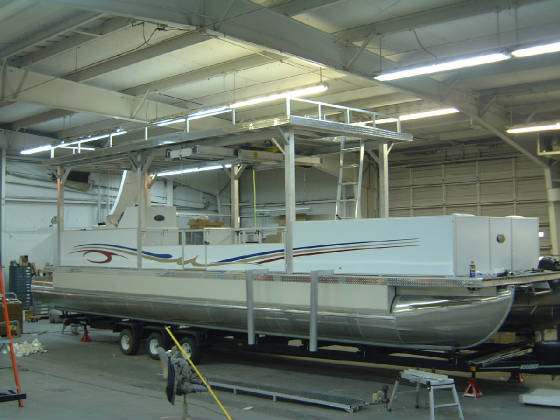 Posts: 705 Location: Livin on a Prayer. | I've got about 3 weeks work left on ShowStopper I....plan on putting grass carpet on the upper deck for hitting golf balls while we troll. The 10 Bose exterior loudspeakers and 2 subwoofers still have to go in too. Weber gas grill is ordered. I decided on Twin Merc 4 Stroke 150's instead of the Verado 300....save some fuel and still get up and roll. Can't wait for the opener UpNorth. Attachments ---------------- ShowStopper I.jpg (43KB - 315 downloads) | ||
