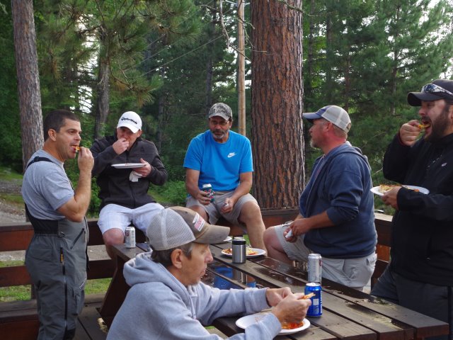 Posts: 32954 Location: Rhinelander, Wisconsin | 54 anglers will hit the water tomorrow on Vermilion out of Spring Bay resort as the MuskieFIRST Summer 2016 Outing gets underway. A BIG cold front moved through today, and lows tonight are going to be in the 40's. Looks like 70 degrees and partly sunny tomorrow and low 80's the next two days before the next front rolls in Wednesday. The mapping/pizza party went well tonight with many maps compared, and spots marked by Steve. More after some fishing reports come in tomorrow! Attachments ---------------- IMGP1646.jpg (88KB - 371 downloads) IMGP1651.jpg (68KB - 358 downloads) IMGP1653.jpg (51KB - 368 downloads) IMGP1656.jpg (87KB - 334 downloads) IMGP1654.jpg (83KB - 387 downloads) | ||