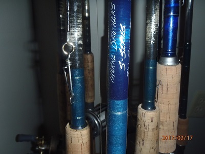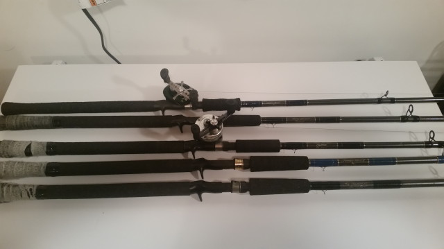 Posts: 299 | Here's my collection of TB Predators. I think most of the thread colors end up darker on the rod than when you choose the thread in person. I would strongly suggest going to the store and/or handling a lot of rods before choosing your custom. It's on you if you don't like it as they are custom rods. I prefer full syncork because it is light and tacky even when wet. Doesn't get hot in the sun either. The bottom rod was my first one and I have been using it since the start of the '2010 season and the handle still looks great. After a few seasons they get a bit smoother. I did plain foregrips on mine as I mostly palm the reel. The 2 longer foregrips are 5" and the short ones are 4". The top one is what they call a "full wells" and if you use the foregrip they are really nice. Depending on hand size you will want at least a 5" and possibly a 6" if you have big hands. My only regret is I did standard fuji guides. Every year I think about bringing them in for new sets of Torzites. The top one is my wifes and it has the torzite guides. MH blank and it is lighter than most of my bass rods. But it is really hard to justify spending 1k on guides for my setups. Attachments ---------------- 20170217_180457_1_1.jpg (39KB - 529 downloads) | ||