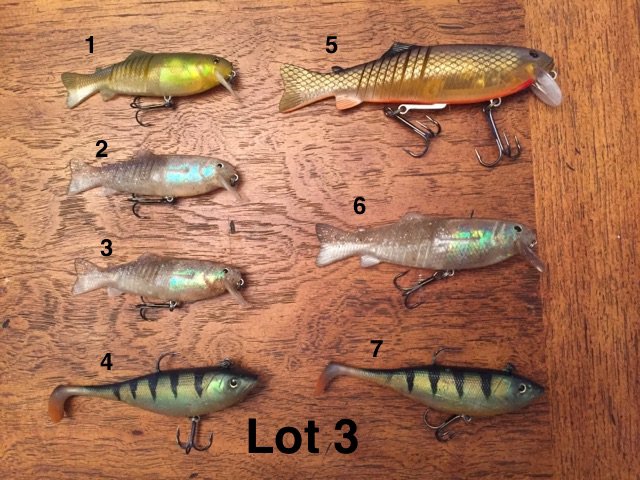 Posts: 15 | Selling lures that I don't use any more.... thinning the herd. Shipping is $4 for the first lure and $1 for each additional lure purchased. For example, if you purchase 3 $5 lures the total price is $21 (5+5+5+4+1+1 = $21). Send me a message with the baits you'd like and I'll give you my Paypal info (please pay thru friends and family). Will update as sold once payment is made. LOT 1: 1. Reaction Strike side to side top water $7 2. Poe's Giant Jackpot red $6 3. Lee Lure Junior Chopper $12 -- SOLD 4. Buzz Bait Mugombo body $5 5. Rattle Hawg $6 6. Mouldy's Husky Hawg Wobbler $5 7. Le Lure Creeper $10 LOT 2: 1. Killer eel $5 2. Mo Joe $6 ---SOLD 3. J Mac Musky Jig $5 4. Bull Dawg (spring) $5 LOT 3: 1. Joe Bucher Swim'n Joe golden shiner (small) $5 --- SOLD 2. Joe Bucher Swim'n Joe pearl (small) $5 --- SOLD 3. Joe Bucher Swim'n Joe pearl (small) $5 --- SOLD 4. Storm swim bait $5 5. Joe Bucher Swim'n Joe hot sucker (large) $7 --- SOLD 6. Joe Bucher Swim'n Joe peal (medium) $6 --- SOLD 7. Storm swim bait $5 LOT 4: 1. Joe Bucher Depth Raider sucker pattern with rattle $6 --- SOLD 2. Strike King 10XD $5 3. Rapala Super Shad Rap $6 --- SOLD 4. Salmo Skinner $5 --- SOLD 5. Fuzzy Duzzit (large) $5 --- SOLD 6. Fuzzy Duzzit (medium) $5 --- SOLD 7. Joe Bucher Baby Depth Raider $5 --- SOLD 8. Storm Deep Jointed Minnow Stick red head $5 9. Storm Deep Jointed Minnow Stick orange belly $5 10. Bomber Long A black $5 11. Bobbie bait (small) $7 12. Joe Bucher JB Rattler $5 Lot 5: 1. Llungen Tail yellow skirt $6 2. Llungen Tail black skirt $6 3. Baby Bucher Tail (silver blade) $5 4. Medium Bucher tail (gold blade) $6 5. Fluted Bucher tail small (orange blade) $5 6. Musky Candy $5 7. Baby Bucher Tail (red/black skirt) $5 8. Llungen tail with tube body $5 9. Mepps Musky Killer $5 10. Bucher Tail $6 11. Mini Medussa (top tail is cut off) $5 12. Giant Flasher with Mepps Maribou Tail $6 Edited by 1musky 10/8/2017 11:42 AM Attachments ---------------- MuskyLot1.jpg (70KB - 498 downloads) MuskyLot2.jpg (71KB - 412 downloads) MuskyLot3.jpg (91KB - 496 downloads) MuskyLot4.jpg (99KB - 460 downloads) MuskyLot5.jpg (78KB - 431 downloads) | ||
