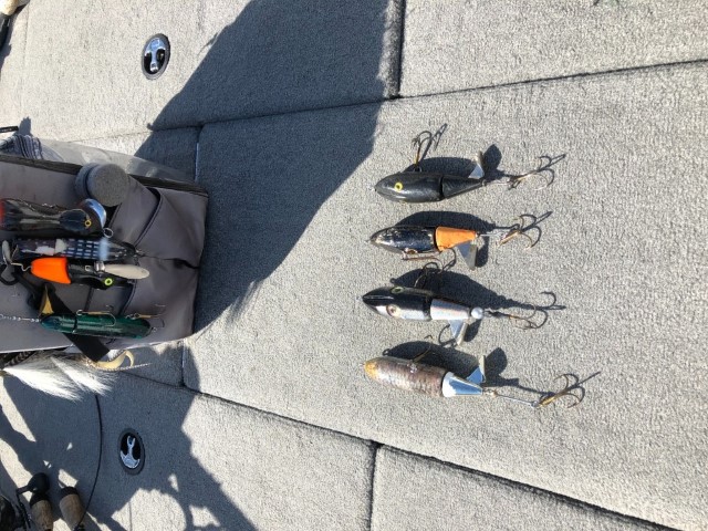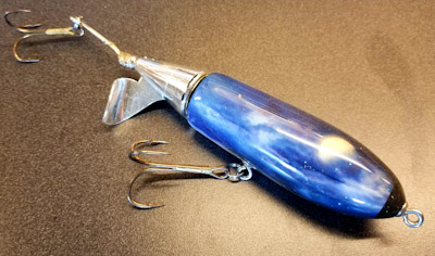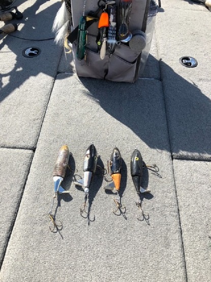 Posts: 356 | Caught one this AM on a Rumbler and got to thinking about this thread. There were a number of variations in the protos Don made. Searched my boat and came up with 4 that varied in length,width,type of composite or whatever. I have more at home including a neon green fatso that should be here with the bloom already starting. Anyway here’s a pic of those i had in boat. One on left is a tremendous hooker with extended rear hook and has an enamel like coating. Black one on right was a fatter real early version. This one was first used one morning when with the late,great Jack Burns and Matt my old partner in ERC. It grabbed a 40 first stop and a 50 on the second spot(one of Jacks favorites). Great baits and when tuned gave(still give)a unique high pitched sound that we called the ‘pitter patter of lil mouse feet’. Don was/is an inventive genius. | ||