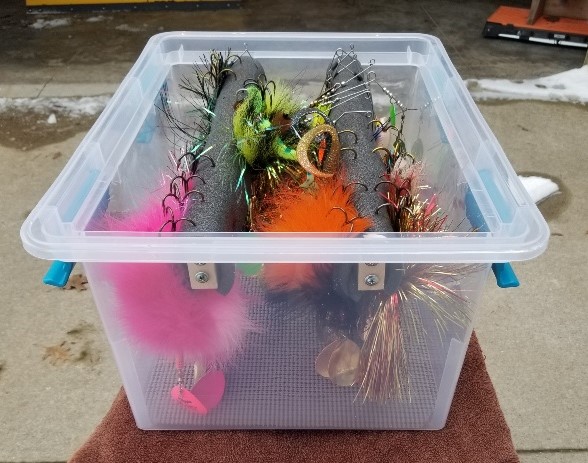 | Very nice. I like this a lot better than the milk crate, down spout box I made for rubber, other long baits. And the clear box is a great way to see the baits, as you mention. |