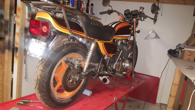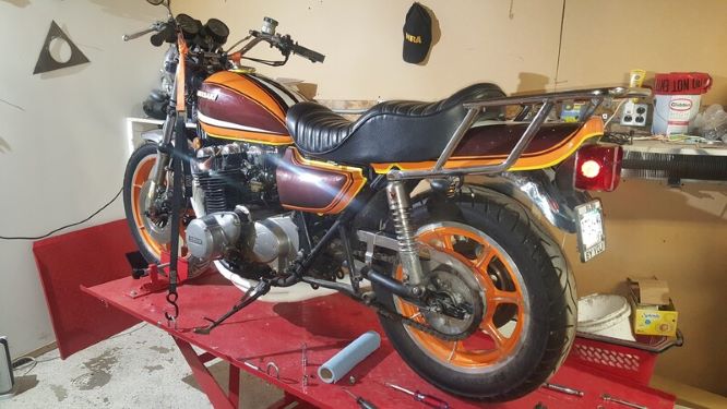 Posts: 4080 Location: Elko - Lake Vermilion | Rebuilding a 77 KZ 1000 LTD...Total frame off Restomod . rebuilding the engine and trany due to me banging into 2nd from 1rst @ 9,000 RPM Haaha.. Going back to black rims and maybe the Kawasaki green frame and body parts. Attachments ---------------- 20201017_155405.jpg (54KB - 364 downloads) 20201017_155914.jpg (53KB - 372 downloads) | ||