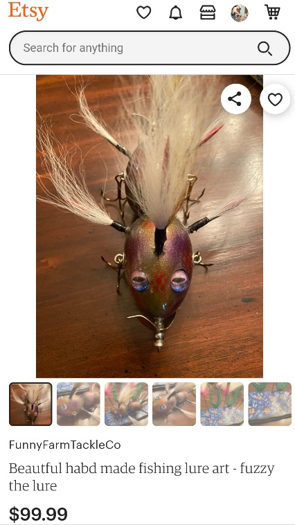 Posts: 1289 Location: Walker, MN | It helps if you know the bait maker, or if you've ever tried to make your own hard lures. Hand formed, hand painted lures should bring a bigger price. Plastic, mass produced, machine made lures and bucktails catch fish too. | ||