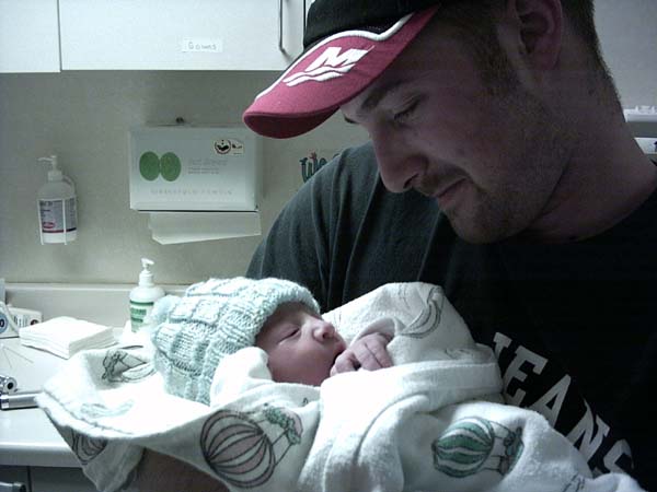 Posts: 32954 Location: Rhinelander, Wisconsin | Keith and Brandy called us middle of the night from the hospital in Antigo, letting us know the baby is on it's way. He just called; looks like she is going to have a long day, but SOMETIME today Sue and I wil be Grandma and Grandpa Worrall. More on this when we get back from Antigo. I apologize to everyone who was hoping for a Minnesota Muskie Show report! YAHOOOOOOOOOOOOOOOOOO!! Can't wait to hold that baby! 12:35 AM on March 14 Cole Martin Worrall arrived. Mom and baby are doing great. Cole weighed in at 7 pounds 15 1/2 ounces, and is 20" long. He's absolutley beautiful. We got 7" of new snow to boot, so the ride home was a trip. It's 3:42 AM right now, I think I am going to unplug the phones and go get some sleep. Keith was thunderstruck as he held his son for the first time, and Sue looked pretty good holding her grandson. | ||