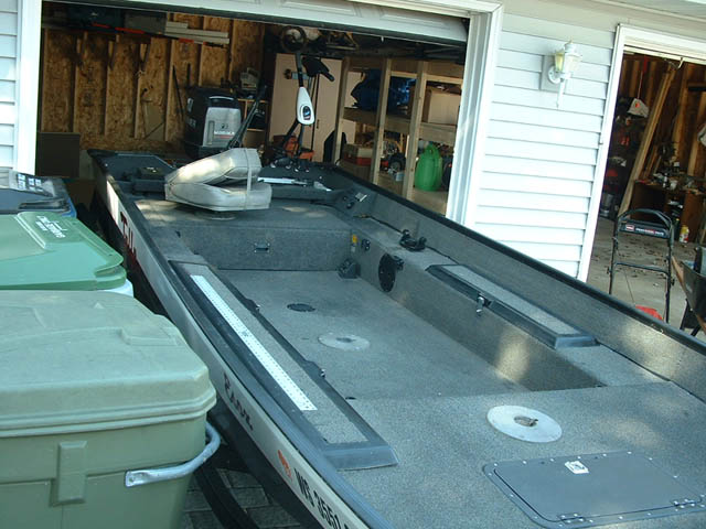 Posts: 317 Location: Grafton, WI | Since the idea of getting a new boat this year was somewhat out the question, I decided to turn my 1989 Tuffy Marauder into a new boat. It was in pretty rough shape when I bought it 8 years ago, but it was fishable and I didn't really care. First thing I did was add a rear deck about 5 years ago to make things easier on the peron fishing in back. The somewhat mis-matched carpet didn't bother me, cause it was still fishable. Three years ago, I decided to have the outside done with new paint and get a new trailer at that time. With the outside looking so good, I finally started thinking the inside needed work. The old fiberglass lids were an eye sore, and almost caused me to go swimming a few times while manuevering around the boat doing battle. The final phase started about 3 weeks ago with completely gutting the boat.... all carpet and wires removed. Next, the fun task of removing the old glue. After the boat was clean, I needed to do some intensive planning for the flush mounted livewell and rod storage lids (no more goofy lids). With all the other stuff layed out, time to carpet (carpet bought at boatcarpetbuys.com) After the carpet was layed, I re-ran all the wires with new wire, and hooked everything back up. Well, everything is done now, and she is ready for the water... finally! Here she is Edited by esoxsmd 5/18/2004 8:09 AM Attachments ---------------- 1.jpg (53KB - 1183 downloads) 3.jpg (67KB - 1149 downloads) 4.jpg (75KB - 700 downloads) 6.jpg (62KB - 1307 downloads) 8.jpg (92KB - 2150 downloads) | ||