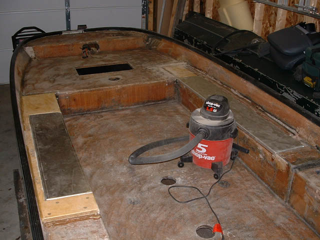 | I was referred to this website from walleyecentral.com to look at what you have done with your tuffy. What you did with your boat is unreal!! I have a couple of questions for you. I have an 89 tuffy esox but the floor in the back by the driver pedestal is rotting. What suggestions would you have for replacing part or all of the floor. I assume there are braces under the floor that the new floor attaches to but I guess I don't know. I really like the idea of what you did for the gas tank and the back casting deck. I plan to do the same after I replace the floor below it. Any thought or photos is greatly appreciated!!! I bought this boat last fall at a marine inventory liquidation auction. It is a fun boat to fish out of an small enough to get in and out of some the smaller glacial lakes here in NE South Dakota. Thanks in Advance. | |||