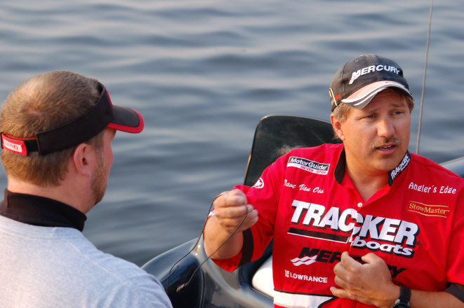 Posts: 32958 Location: Rhinelander, Wisconsin | The internet connection here was down last night, so I was a bit delayed in reporting! A HUGE cold front went through yesterday, driving water temps down 9 degrees, and creating winds to 30 miles per hour. We fished hard, and put several big Pike and Smallmouth in the boat. I had a true heartbreaker of an experience, will let Sue tell that story tonight. Ran into Tim McCormick, he had 5 muskies in 3 days, all in the mid 40" class. He had not moved a pig yet, but the water temps 4 days ago were 50's, then 68 when I got here, and 57 this morning. We need some warm weather!! Tomorrow looks good, maybe the weather will improve. My friends from Bemidji, Hopper, was up for three days. They lost several, one was a really good fish but not a pig. They were pretty frustrated, but happy with the action until the blasting cold front. Well, out on the water!! Attachments ---------------- IMAG0016.JPG (93KB - 161 downloads) IMAG0017.JPG (90KB - 164 downloads) IMAG0019.JPG (88KB - 134 downloads) | ||