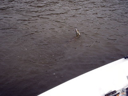 Posts: 80 Location: Northwoods | Just have to add my "5 cents"...yesterday was cold and wet but while in yacht club bay while Steve was throwing a Wabull (Cady, you've started a craze...he is relentless with this bait!!) the water began to wake and a Northern/Jack surfaced after the Wobble swiping it and then diving, but its side girth had to be at least 10 to 12 inches deep, the fish was at least 50", it hit, was stuck for just a few seconds, and was gone...Loch Nes of Wabagoon?!?! Whoa. Needless to say we have been back twice in one day. This has been an awesome trip so far, exceeding last year by a long shot. However, today we dedicate the efforts and experiences enjoyed by us both to Kevin Worrall (2/14/80 - 7/05/91) -- We were thinking of you Buddy! Thats all for now...Szq | ||