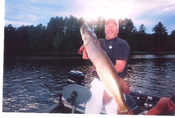 Posts: 13688 Location: minocqua, wi. | just got in to the office to check on the boards. first, i've got to thank Norm Wild for nudging me into the Rhinelander Musky League and especially thank my new friend and partner Mike Morse (BigMO)and finally Steve Cady and Kid Catchem for the confidence in the Weagle! alot of you understand what has happened in my life during the past year and have become friends during a time when i thought there was nothing or nobody who gave a crap about me. well, i turned to the "strangers" of the Musky Message Boards when life became so dark that i felt dead. some of you Muskihntr, Gare, H30, Cady, Fenner, Heiting, Jackpotjohny, Tuffdaddy, Hunts, 52isntbigenough, KapnJim and the list goes on and on .... sent me messages of encouragement or just wondering how i was during a time of dispair. each and every message came at a time when it was the only good thing i saw in that particular day. well, alot of healing has gone on for me and the past 3 months have been among the best of my life for myself and with my kids. i decided to fish when i didn't have the kids to be able to focus on something positive and especially to share the boat and make new friends ... last night's fish was so special to me and really represented to me that gifts of friendship and success are out there ... sappy, but guys you can't imagine how good i feel right now and how much i appreciate your advice and humor and especially the strangers among you who have become friends! this fish was amazing. we were fishing the last hour of league and the weather had made a slight change. Mike and i were working the outside edge of a stump field close to the turn of the main river channel. once again i got caught a bit too far inside and got frustrated with weeds. i told Mike it's again time to fish instead of get frustrated, so i put on a supertopraider and casted out the other side of the boat toward the channel. about 10 yards from having the bait in this fish came up. Mike turned to look and we were shocked at the size (you've all been there). well, my knees were shaking and i almost couldn't control my hands. i turned the boat and held the position in the current and wind and Mike casted in to no response. i put on the Weagle Baby!!!!!!!!!!!!!!!!!!!!!!!!!!!!!!!!!!!!!!!!!!!!!!!!!!!!!!!!! and threw with confidence. swooooossh .....swoooosh .... all of a sudden about a 24-26" musky breaks the water after the Weagle .... i kept the bait in the game and in my mind said oh, SHHHHH! ..T wrong fish when right behind it comes the 52"er engulfing the bait ... she took it deep before i throttled the hook set. She was a hot fighting fish and gave us all we had including two victories against the net. we got her in and a friend of mine (Tom Knudsen and his son) came to help us verify her. next a guy comes out in his pontoon boat and said he saw it from his house about 300 yards away and just had to come out and see the fish. this is what it's all about. oh, there are no big fish in Wisconsin and the Weagle is just another bait! | ||
