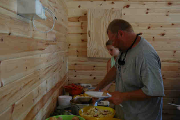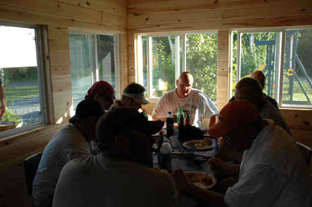 Posts: 32959 Location: Rhinelander, Wisconsin | Tommyv got a 36 today. In the unreal windless record heat here it was a NASTY day on the water. 100 degrees onshore, and high 90's on the water. There were some very nice fish moved, but no one scored a piggy. I had a dandy miss a Wabull and had a great time with two outstanding boat partners, despite the heat we caught a few nice Pike and moved two big girls, and Slamr moved the HOG he saw last night; she went around two times on an eight before cruising off. Indian Point Camp provided us with a welcome respite from the heat at the Wednesday Fish Fry. We all ate very well and drank a fair bit of free beer, pluse we each got an Indian Point MuskieFIRST hat and some pretty cool door prizes. I got a coffee cup because darrel already got the massive Blue can of suds. The folks at Indian Point Camp really know how to make a guest feel welcome!! Attachments ---------------- IMAG0012.JPG (89KB - 145 downloads) Chef J prepares our fish dinner.jpg (27KB - 135 downloads) Fish Fry.jpg (21KB - 129 downloads) The Chow Line.jpg (15KB - 152 downloads) | ||