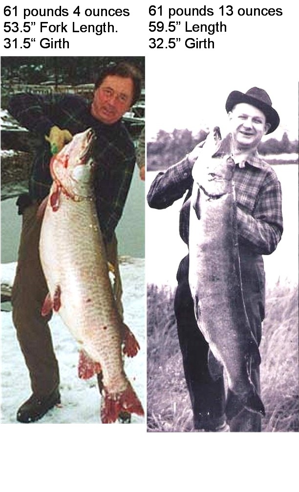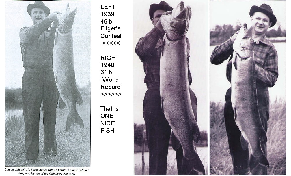 | The amazing thing to me is ths fish on the left IS NOT even close to a 40lb class musky!!!!!!!!!!! Considering these fish are very close in size the 1940 fish on the right is, AT BEST a 35lb class fish. Louie should not have the record based on this alone. | |||