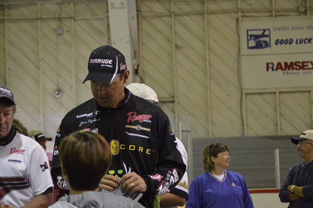 Posts: 2865 Location: Brookfield, WI | He's a real professional, isn't he. Look how he made sure those fish were safe when he helped those young ladies hold them. I've never seen him help anyone else hold a fish like that, so you know he's being extra careful for the sake of the fish. Good luck, tonight, Bob Guccione. Kevin | ||