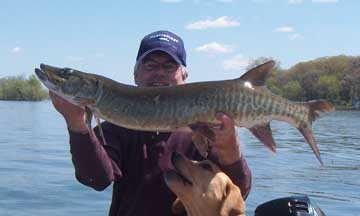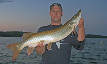 Posts: 2691 Location: Pewaukee, Wisconsin | WOW, it's been a long time since I posted a report here. Here is some off my web site report I just finished along with a few pictures. Ok, now for some fish reports. The muskie action starting in early August has just been awesome for those who have got into the trolling mode. I made a few minor adjustments trolling since the July report but mostly the pattern has stayed the same. We are still working areas with the most bait fish. Bluegills, crappies and perch are stacked up in areas of deep water. I know where they stack up and how to get the baits where the muskies feed. Deep running crank baits are still your best bet because they will get to where the bait fish are and when trolled through the schools of bait they will get ate. Monday the 1st of August I got out with a new friend Mike Phelps and his boss Tony for a 1/2 day outing after work. We worked crank baits in deep water off the wind blown side of Pewaukee Lake. It didn't take long before a rod started to sing out drag and Tony was into his first muskie of the trip. A scrappy 35-incher was caught and released 1/2 hour into the trip, a good start I told them as I set the lines back up. In the next hour we caught and released two more smaller muskies in the low thirties. At 9pm we got into a very good muskie that made our outing one they will not soon forget. This was a beautiful 48-inch 30lb muskie that might just get Mike a raise at work by his boss Tony. I will get a picture loaded to the left for you to see and also in the PHOTOS 23 page when I get time to do that. Congrats Tony on a great Pewaukee fish. This is only one of the many multiple fish afternoons we have enjoyed lately. Here is another one that was just three days later. This was the 4th of August and a 1/2 day 5pm till 10pm outing. Aaron and his friend met me for some muskie action. His friend had never got a muskie before and was looking for his first. He didn't have long to wait because I had a rod start to strip line just 15 minutes into out outing. A mid thirty's muskie was soon in the net and then released. I reset the lines and another fish grabbed on of my crank baits and he was into his second 36-incher minutes after he just released his first. Believe it or not this happened again after we released the second fish. The third fish was a 37-incher and now Aaron's friend is into his third muskie and its only 5:45pm. Remember we started at 5pm. Well Aaron got to get into the action after that with a 36-incher of his own shortly after 6:30pm. Yes, that's 4 muskies in one and a half hours of muskie fishing but that was it for the outing. The next day I had Joe, Tia and Melissa out for some action. Tia got her first muskie and Melissa got a pike. Monday the 7th I got out with Kevin Dunn, we boated a 37 and 36-incher. We also had another fish that got off but that's fishing. Well you can now see the action Pewaukee Lake is putting out in August. Multiple muskie nights is only part of the action, the walleyes that have been hitting our crank baits are quality also. Most of the nights we boat at least one legal walleye while we troll for muskies. Walleyes in the 17 to 19-inch range are common this past two weeks. Most of these are feeding in the same areas the muskies are. Find the food and the toothy critters looking for an easy meal. How cool is it to troll for muskies, release the muskies and catch a walleye or two to bring home for a meal. I know works for me because I got to eat a few of them lately. Today I got out with my son Mike and we had two legal walleyes in the first 1/2 hour of fishing, they came as a double, one on his side and one on my side. We also got a small mouth bass and lost a good muskie before calling it a morning. This recent East wind cool down has brought the water temps into the 77 degree range. This is a welcome cool down since the water temps were into the low 80's for a while. Look for the fish to start the pre fall migration back to the weeds in a few weeks. For now, enjoy the great action trolling while it's hot. I have some open dates left in August if your looking to get into the action. I wish I could tell you about all the guide trips I have had this past few weeks but I would run out of time and room. If you have any questions please feel free to e-mail me or contact me by phone. I would be glad to help you in any way I can. Look for the action to stay hot for the next few weeks or longer if the weather will stabilize. Muskie, northern, walleyes and bass all are active and fun to catch. This past week cool down has slowed the fishing some but things should get back to normal and the cooler 77 degree water temps will be easer on the fish. Here is some pics........... Attachments ---------------- 30melissapike5x3.jpg (54KB - 225 downloads) 38adam2x1.jpg (35KB - 203 downloads) 36aronspal2x1.jpg (37KB - 218 downloads) 37aronsbud2x1.jpg (37KB - 205 downloads) 48tony5x3.jpg (44KB - 249 downloads) tiafirst5x3.jpg (47KB - 210 downloads) | ||