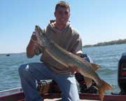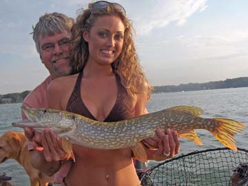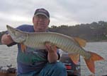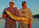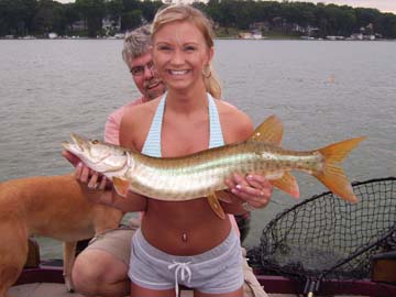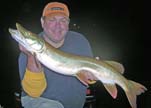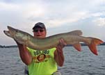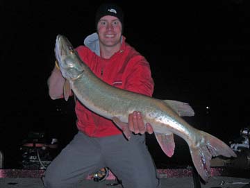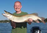 Posts: 2691 Location: Pewaukee, Wisconsin | The fishing on Pewaukee lake has been average to good in the past weeks. Fish up to 47-inches have been caught and released. Most of the action is from the low to mid thirtys fish and weed related. Some good fish in the upper 40's have been raised by my clients but not boated yet. Lots of big fish have showed up on the weed edges and are getting ready to move out to suspend. Look for the action to get hot as the heat sets in this weekend. We are now into the second week of June and the water temps are back into the low 70's after dropping 8 degrees. This past week has been great for action and boated fish. Most of the fish my cliens have caught are in the 37 to 41-inch range. Top water, bucktails, jerkbaits, and cranks have all boated fish recently. Oh, ya one on rubber also. With this comming 90 degree weekend the lake will be full of recrational boaters. Look for your best action early and late in the day. The night bite has still not got going yet but will be starting to be more consistant soon. A client did catch a nice 41-incher just before 10pm last Monday(6-12). The trolling bite will also get going as the water temps rise. I have got a few trolling but most of my booked clients at this time want to cast. The trolling bite will come soon enough. I like to cast while I can before they suspend. With all the big fish still following baits this past week from weed beds and weed lines I expect this weekend and next week to be very good for numbers and quality. Look for the bigger fish to be active at prime times. Fish in the upper 40's and even a couple 50's have been active this past week. With a little luck I will have some big girls being held by clients very soon. I will post a couple client pics from last week. Edited by Mikes Extreme 6/16/2006 10:28 AM Attachments ---------------- 37jim5x3 copy.jpg (53KB - 217 downloads) 37jeff2x1.jpg (43KB - 217 downloads) 41joe5x3.jpg (45KB - 232 downloads) | ||