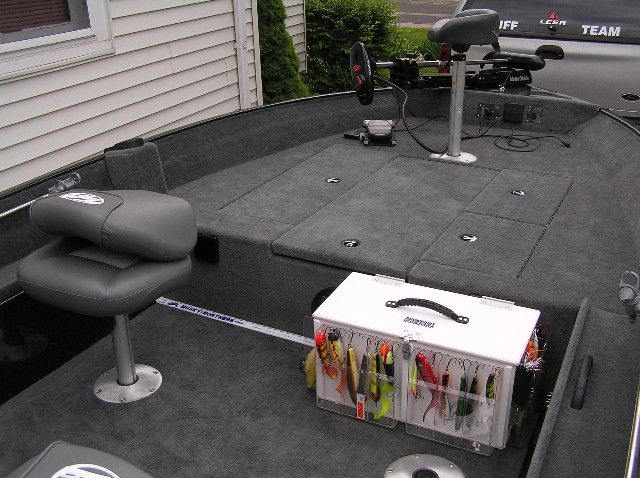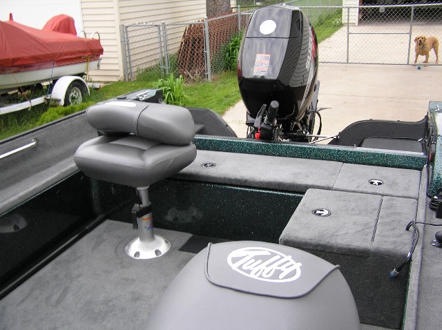 | here's a couple "sneak peek" photos of the brand new Tuffy 1760 GT. it's the re-engineered 1760 hull and interior, minus the big fiberglass cap. it handled the windy and wavy conditions on Petenwell today admirably with a dry ride. the open cockpit design made it easy to move around, tons of storage meant no clutter lying around in the boat and things stayed dry and tight. fishability? ha! this boat is all deckspace, front and back, making particularly good use by converting the sides of the rear splashwell into casting deck with a non-skid coating. it fished much bigger than it's 17.5 foot size; the removal of the cap gives you close access to the water while preserving the deep-v hull for running bigger water. best of both worlds. call me biased, but i'm impressed, and i think you will be too... Attachments ---------------- P5120026.JPG (109KB - 1701 downloads) P5120027.JPG (82KB - 578 downloads) P5120028.JPG (129KB - 757 downloads) P5120029.JPG (57KB - 349 downloads) P5120031.JPG (65KB - 374 downloads) P5120033.JPG (79KB - 407 downloads) | |||
