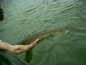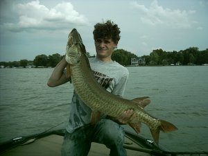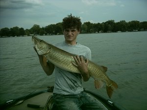 Posts: 227 Location: Southeast Wisconsin | Fished today from 4-9pm with first time clients Bill and his 19 year old son John. From 1-4pm I was out by myself, trolling schools of baitfish over deep water with no success, so the plan was to cast wind blown shorelines and outside weed edges. I drove around the lake for a little while setting up a milk run in my head and then headed to the launch to pick up my clients. After getting the "musky formalities" out of the way, we were ready to attack are first spot. I was just starting to question my decision to fish this particular spot first, when all hell broke loose! I still cant remember what Bill said to get my attention ( I think he just made a noise LOL) but whatever it was, it made me look down just in time to see Johns crankbait being engulfed by a gigantic skie! I couldn't even see the lure in its mouth when she broke the surface and started shaking like mad. I told John to keep her down and proceeded to burn my lure back to the boat and grab the net. I could tell this fatty wanted to make some serious runs, but it wasn't going down like that. I had her in the net quick, before she had a chance to ruin my day. 47.5" and definitely on her way to 50! For a 47+ she had a super huge head. unfortunately, the storms scared us off at 9 and put an end to are musky hunting for the day. Good ole Mr faithful Minn Kota took a crap on me today, but who cares! Out to the garage to fix my trolling motor.. www.benkueng.com Attachments ---------------- john2.JPG (16KB - 186 downloads) john.JPG (15KB - 185 downloads) john5.JPG (15KB - 183 downloads) | ||