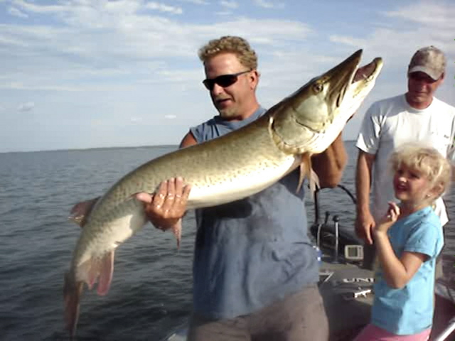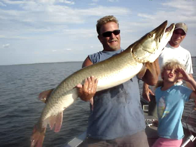 Posts: 24 Location: Webster Lake | Jeff, Thanks for posting the pic for me!! Thanks guys We had an awesome 2 weeks family vacation 7 fish all but one from leech ( 30,40.5, 41,41,41, 54)the other came from Little wolf (44.5) one day when it was way to nasty to be on Leech with 2 kids. I have been waiting for that one for a while we got a couple other pictures from another camera today I will try posting one of those also. Chae | ||