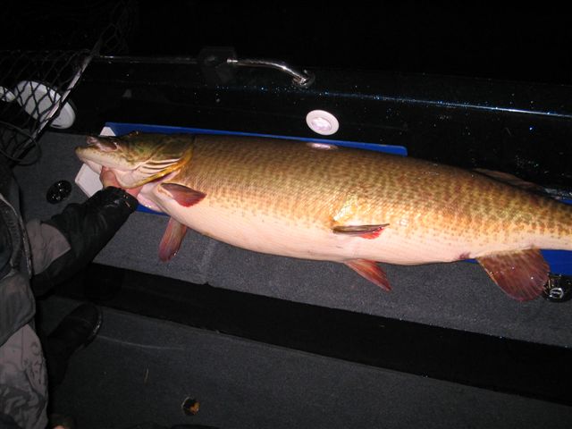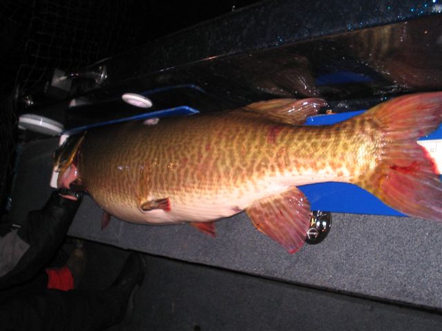Posts: 686 Location: Tomahawk, Wisconsin | Just got off the phone with my brother and he was one happy camper, his client caught and released a 54 incher with a teensy waistline of 28 inches.............!!!!!!! Can you say superfathead!!!?? Easily 50 pounds, caught after dark, on a special XXX bucktail!!! More to follow I am sure, by the way Steve did tell me that this was a WISCONSIN strain fish:) Congrats to Steve and his client on an awesome catch!! | ||