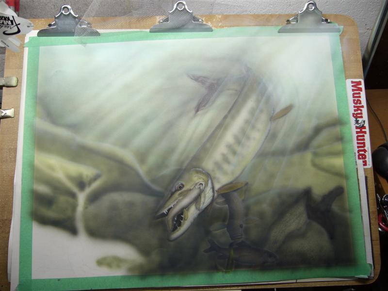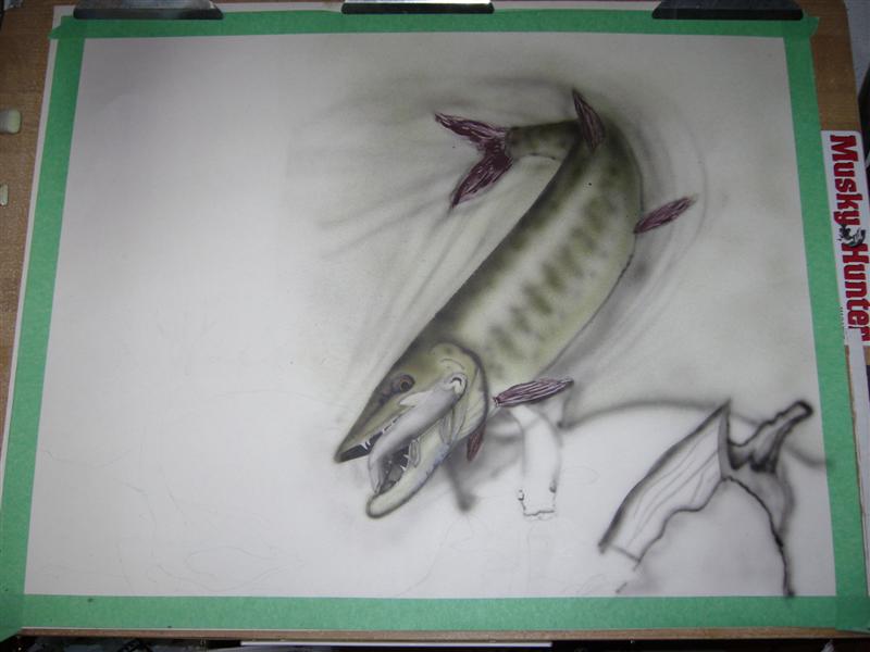 Posts: 680 Location: Muskoka Ontario,Canada | Hi guys, I'm working on a painting which I hope will one day grace the cover of Musky Hunter Magazine and possibly be sold as prints. I never really show my art before it is done but I'd like to share this special one as it comes along. This way you will see it come to life a little at a time. I truly hope you enjoy the journey. Here it is is it's very raw state with the Musky and one sucker in its mouth barely fleshed out. Eventually this will be as detailed as any of my baits and with luck I won't screw it up!!! Attachments ---------------- P1010439 (Medium).JPG (67KB - 152 downloads) P1010441 (Medium).JPG (46KB - 172 downloads) P1010443 (Medium).JPG (52KB - 174 downloads) | ||