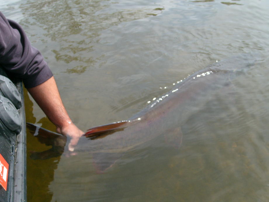 Posts: 64 | Alright, here's the pics! The full fish shot, I have to admit does look like it could be a different fish, but the one release photo shows the distict notch in the tail. Even the color of the fish looks different from spring to fall. Either way, congrats to you Sal on an awesome beast, and now that your feeling better we can get back to the hunting! Post your thoughts people. Attachments ---------------- 0004_3.JPG (64KB - 99 downloads) S7300154_1.JPG (64KB - 93 downloads) S7300163_1.JPG (50KB - 80 downloads) | ||
