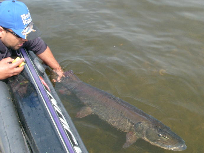 Posts: 4 | WHAT'S UP HERE'S THE SCOOP ON THE FISH FROM THE CHAIN . HIT THE WATER AT AROUND 8ISH AND RAN INTO A MONSTER 20 MIN. INTO MY DAY. I SEEN TWO SMALLER MALES WITH HER . SHE CAME ON A BUCKTAIL ,JUST SWALLOWED THE ENTIRE BAIT . I LAYED INTO HER PRETTY GOOD AND 15 MIN. LATER SHE WAS IN THE NET.. AND THE SECOND I GOT A GOOD LOOK AT WHAT I HAD I WAS IN SHOCK THIS FISH WAS FAT,, REALLY FAT FROM BEAK TO TAIL .. I MEASURED HER UP AT 51.25 ON THE DOT W/ A 24'' GIRTH .. I WAS GONNA CALL THE STATE POLICE TO BRING IN A CERTIFIED SCALE BECAUSE I KNEW IT WAS CLOSE TO THE STATE RECORD BUT I DIDN'T WANT TO PUT THIS BEAUTY IN A LIFE OR DEATH SITUATION. SHE ALREADY SPEWED ENOUGH EGGS AS IT WAS . AND I CARE TO MUCH ABOUT THESE CREATURES TO PLAY GOD SO TO SPEAK.. AND FOR THOSE NON BELIEVERS THAT A FISH CAN ONLY GROW SO MUCH IN A GIVEN TIME . PROVE TO ME THAT A FISH OF THIS SIZE CAN'T GROW TWO OR MORE INCHES IN A YEAR .. I ALSO HAD TWO EYE WITNESSES... IN MY EYES AFTER DOING THE MATH THIS FISH WEIGHED 36LB. 9OZ. NOT INCLUDING A BELLY FULL OF EGGS, MAYBE A FEW POUNDS OF EGGS AND THAT'S PRETTY DAM CLOSE. CPR IS A GREAT THING HOW D I RESIZE PICTS (ANYONE) | ||