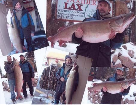 Posts: 2 | I know Rick posts on here too, so he may add to this later or start his own, but here's what I posted elsewhere: Tom Gelb's 48.0 # 52 ¾ “ Length 27 ½ “ Girth Musky - 11/27/07 My dad doesn't get on these boards, but since his fish last year I've spent some time on here and other boards reading what people have to say. He gave me the ok to post these pics. (The specs in the subject are from Lax's and his certified scale.) As a heads up to all who will question it, he tried for ~ 2 hours to revive it in 24 mph winds, 12 degree air temp (probably ~ 0 wind chill), and snow - by himself - and once he actually blew to shore he actually stood in the water while still trying to revive it... I'm sure Heiting will share the whole story when he gets back as he did with the first fish... or possibly Lax on another board. Matt Gelb Attachments ---------------- collagesmall2.jpg (36KB - 660 downloads) | ||