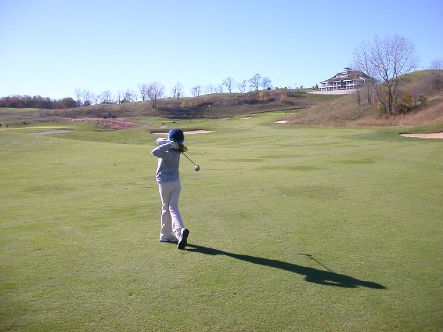 Posts: 2865 Location: Brookfield, WI | I'm a little short of musky pictures this year, but I do have some cool shots on a crisp fall day of a college scholarship in the making. My 10 year old Gracie's first time on a real golf course. Note the perfect set up at address, the drive of the hips and the shoulder turn, the high hands on the follow through, and the ability to knock in the big putt on the last hole, even with the pressure of being in Godzilla's shadow. Her instructor must really know what he's doing. Kevin Solar Power, it's not just for greens anymore. Edited by MuskyHopeful 12/7/2007 6:03 PM Attachments ---------------- grace_golfing 005.jpg (91KB - 122 downloads) grace_golfing 011.jpg (93KB - 109 downloads) grace_golfing 010.jpg (83KB - 105 downloads) grace_golfing 015.jpg (80KB - 113 downloads) | ||