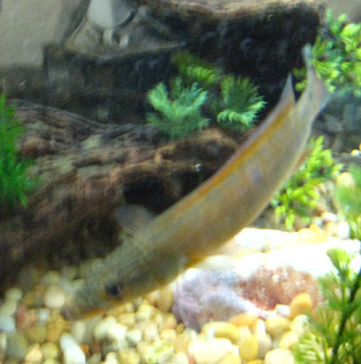 Posts: 1106 Location: Muskegon Michigan | Here is one picture of our babies from 2005. They alive and well in a small private lake. They are from the Minnesota Musky farm Leech lake spotteds. We have a 55 gallon and had no problem raising 6 baby muskies to 14 inches. Deffinatly use well water and lots of filtration. I fed bait fish minnows from the local bait shop and also small goldfish. Also there is a pinkish minnow at the Pet stores called rudy reds or something like that. The little skis are very cool to watch when they are feeding, Kingfisher Edited by Kingfisher 2/2/2008 9:08 PM Attachments ---------------- baby muskie 5.JPG (22KB - 2166 downloads) | ||