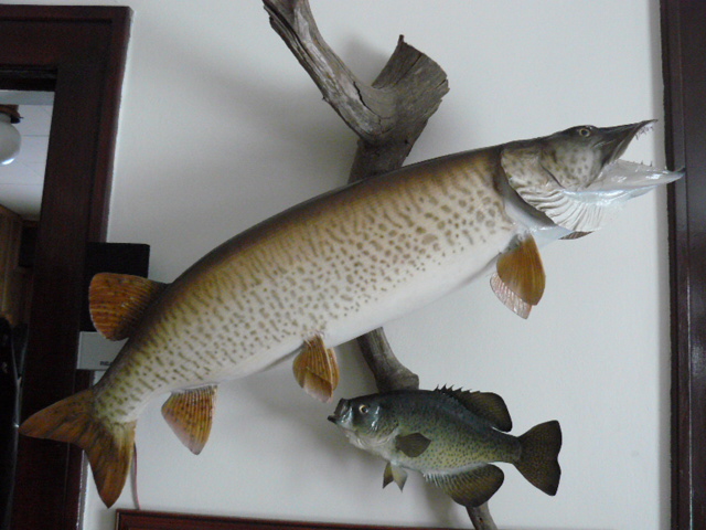 Posts: 32954 Location: Rhinelander, Wisconsin | I have a 43" skin mount from the late 70's, a 44" Canada fish that died before I got her in the boat in 1981, a 51" skin mount from 1979/1980 ( somewhere in that era, can't remember--long story on that one), a few Pike to 44", and a reproduction of the sixth big girl I caught off the Goon. One of these days I'd like to do the 54 and 54.5 I caught during a very cool trip in 1991 there right in front of Claybanks Marina just to make sure I stay ahead of Norm with the wall coverings.... Hannah Northcott had the only pictures, and when she passed away I'm not sure what happened to them. For years she had a tooth that I took out of my thumb while registering the released fish Rick Lax did a perfect reproduction of, and a bunch of images of our crew with fish from the Goon under a sheet of glass on the counter of the bait shop. I really miss that lady; she sort of adopted my boys and me. Havent had a fish killed intentionally in my boat since '84, and won't allow another now that the reproductions are sooooo stunningly realistic. Attachments ---------------- P1010001.JPG (149KB - 318 downloads) P1010002.JPG (147KB - 211 downloads) P1010003.JPG (156KB - 342 downloads) P1010004.JPG (155KB - 208 downloads) P1010005.JPG (154KB - 356 downloads) | ||