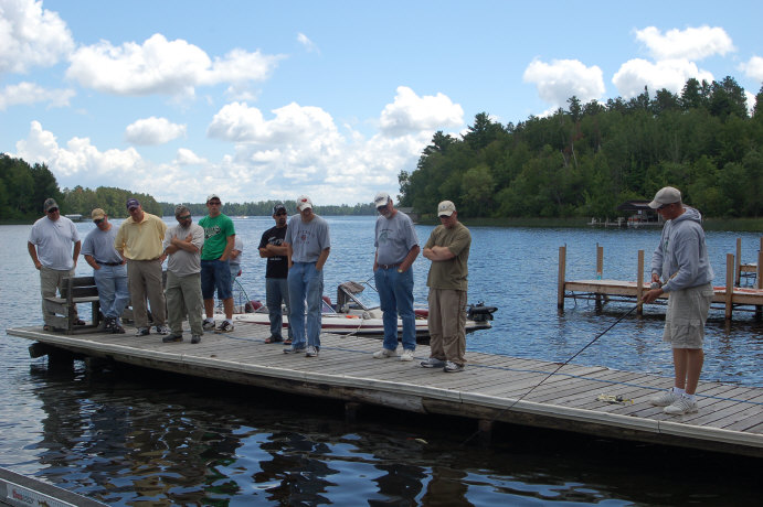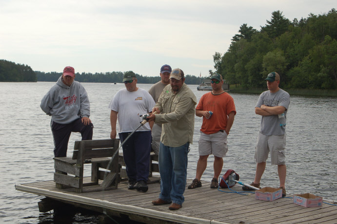 Posts: 2323 Location: Stevens Point, WI | Day 2 began this morning with Matt Snyder of Chad Cain's Guide service providing a dock side lure demo and informing the group with whats hot and fish location. Conditions are on the verge to really heat up. Fish are transitioning from weedlines to rock and becoming more active as the water warms. Matt said Lungen DC9's have been hot as of late, along with 9 inch Curly Sues. He stated colors like Victoria Secret, black and yellow blade bucktails and any other gaudy looking colors have been getting the nod as of late. He also said fish have been located on the secondary break, just off the primary break. Stay tuned for daily reports. Edited by Merckid 7/20/2008 10:20 AM Attachments ---------------- DSC_0001.JPG (89KB - 278 downloads) DSC_0002.JPG (78KB - 277 downloads) DSC_0003.JPG (81KB - 263 downloads) DSC_0004.JPG (67KB - 270 downloads) DSC_0005.JPG (76KB - 269 downloads) DSC_0006.JPG (69KB - 267 downloads) | ||