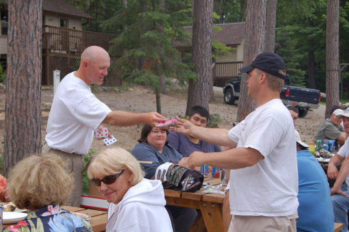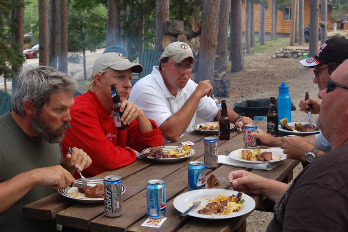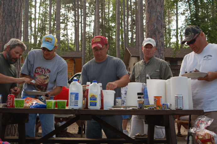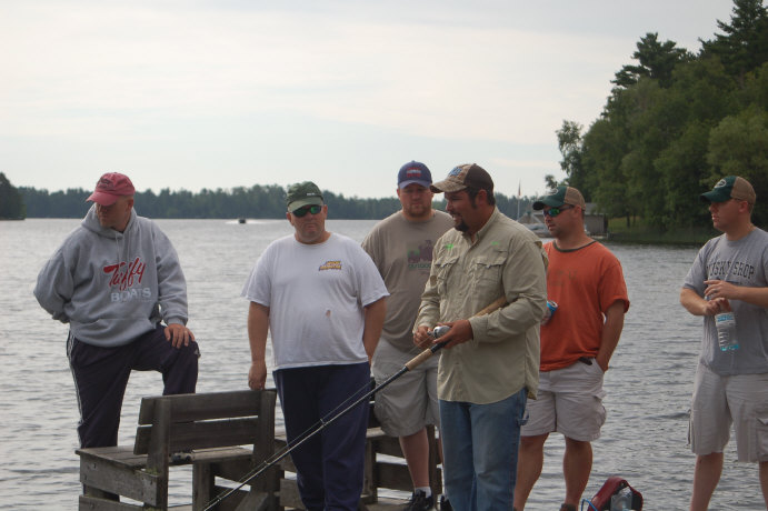 Posts: 2323 Location: Stevens Point, WI | Joe Amundson, owner of Spring Bay Resort and company put on a steak fry for the entire camp. Everyone who attended was served a steak, potato, and drinks. At the end of dinner, Lambeau gave out some of the baits generously donated by H2O, Mojo Tackle, Tacklebooty, and Figure 8 bucktail to everyone who attended the outing. The fish action seems to continue getting better as the week has progressed but keeping hooks in fish and getting fish to commit have been the struggle for many. But with chance of showers coming the next two days, things can only get better. Edited by Merckid 7/24/2008 12:11 AM Attachments ---------------- DSC_0009.JPG (94KB - 236 downloads) DSC_0026.JPG (103KB - 215 downloads) DSC_0027.JPG (71KB - 225 downloads) DSC_0021.JPG (114KB - 220 downloads) DSC_0028.JPG (105KB - 207 downloads) DSC_0029.JPG (94KB - 208 downloads) DSC_0040.JPG (76KB - 204 downloads) | ||
