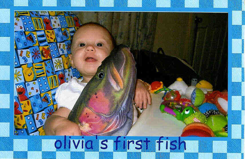 Location: Athens, Ohio | Well, I don't know if this meets all the qualifications listed, but daggone it, Grandpa mikie's gotta brag somewhere! Here's a pic my daughter in law took of our grand daughter at 6 months, posting with a fish pillow we got for Jon 20 years ago. She's a real sweetheart, I figure if it wins a reel then she's got her first piece of muskie gear to get her started. enjoy! m Attachments ---------------- Livvy's first.jpg (65KB - 143 downloads) | ||