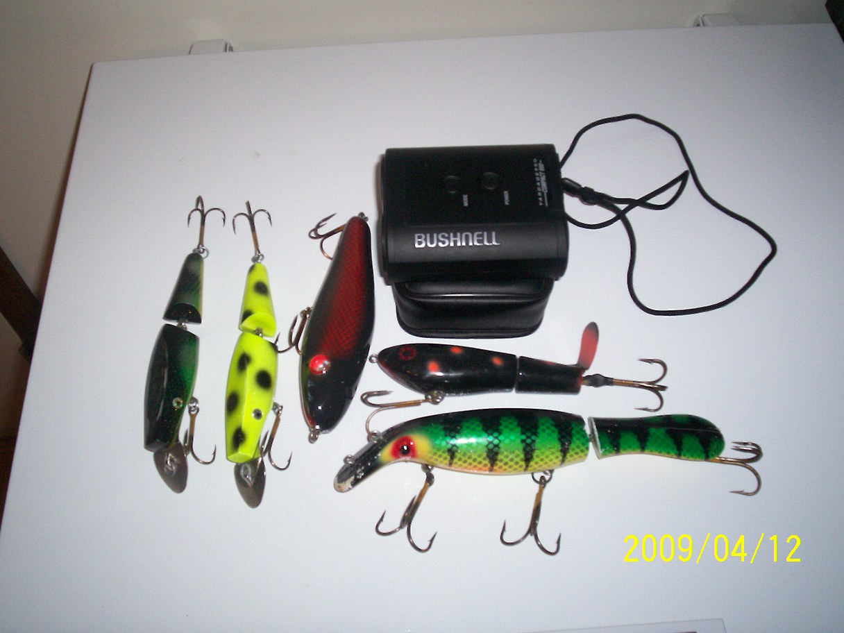 | Jump to page : 1 Now viewing page 1 [30 messages per page] Muskie Fishing -> Buy , Sell, and Trade -> wtt lure lot and range finder |