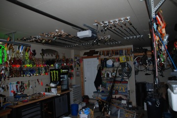 Location: Sun Prairie, WI | Jsondag - 4/30/2009 4:48 PM That is a sweet set-up for a beginner - Here is a look at an addicts garage!... My garage... My buddy saw this thread and thought I should show you what you have in store - The Rod holders on the ceiling were my wife's Idea, She had a great idea for reel storage as well... I'll take a pic later! For now you can enjoy this one. Jerry Sondag Headshaker Guide Service What is your address?? Edited by gtp888 4/30/2009 5:18 PM | ||