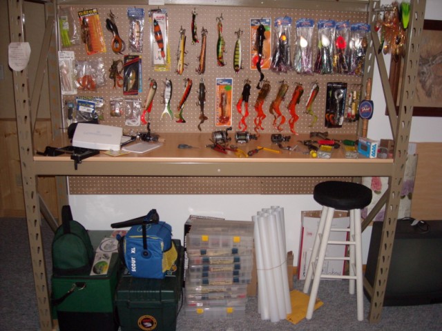 Posts: 692 Location: Pelican Rapids, MN | And you can't even see the 9 lakewoods, 4 dunwright, and 7 Just encase boxes that are full- Not to mention there are 4 Gladiator 3'X6' rolling storage cabinets full of stuffed Plano's.... I need to have a garage sale:) Not to mention I need like 5 more rod racks. Jerry Sondag Headshaker Guide Service Edited by Jsondag 4/30/2009 5:49 PM | ||