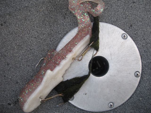 Posts: 311 Location: Ontario | That dawg is a winning colour, I didn't realize it came in a Pounder too (I have it in shallow mag). The stuff gunked up on the hooks looks a lot like mossy algae. We get that a lot and its messy to fish thru..gobs onto everything. It's almost jet black and boy does it stink and take time to clean off. The second pic looks more like sandgrass/chara to me. Either way, you're on a good spot! | ||